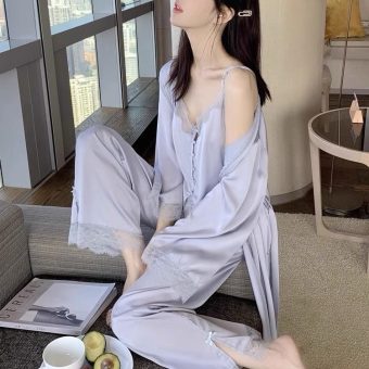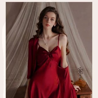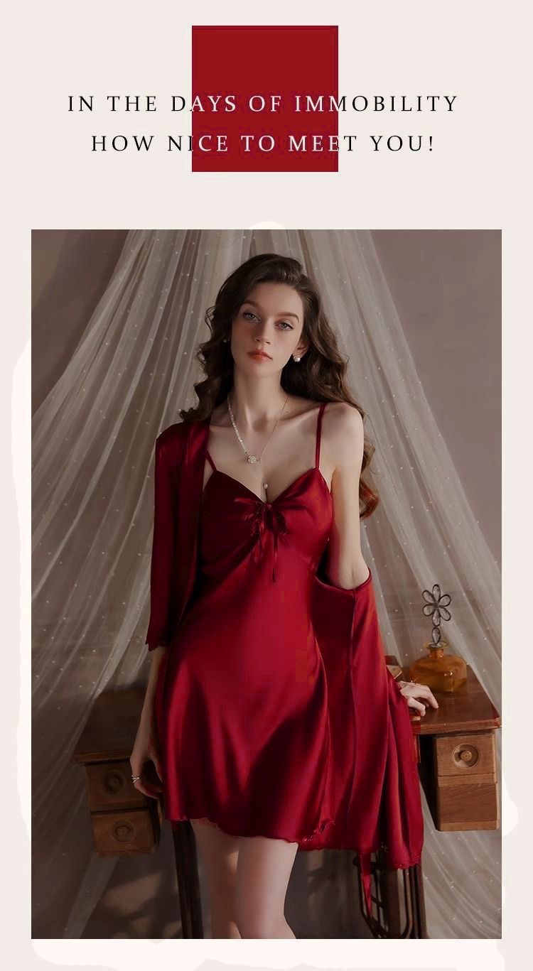 Sexy Padded Satin Nightdress for Spring & Autumn