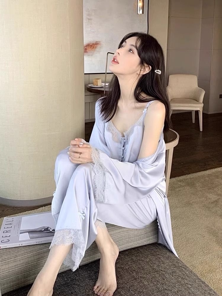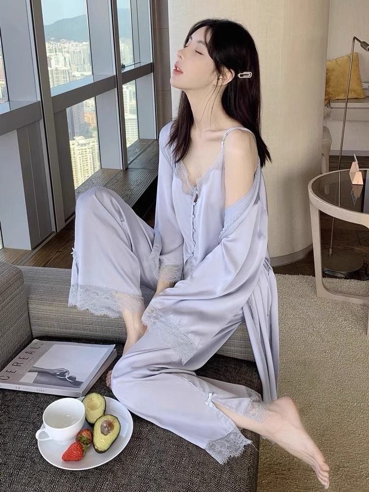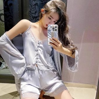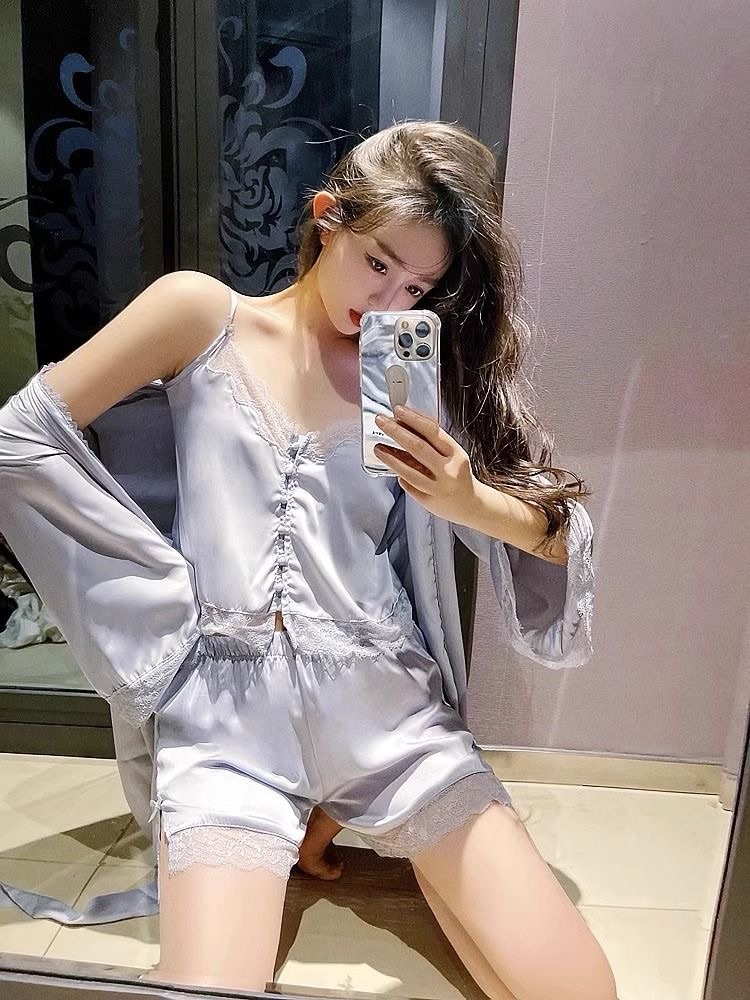 Cat Kite Sexy Silk Lace Strap Nightgown