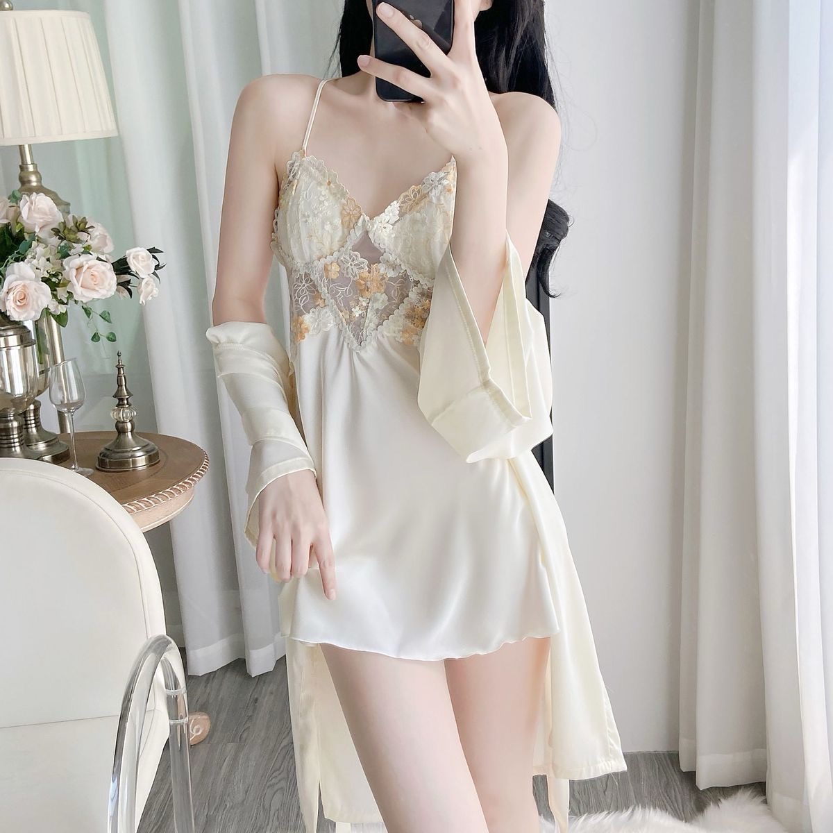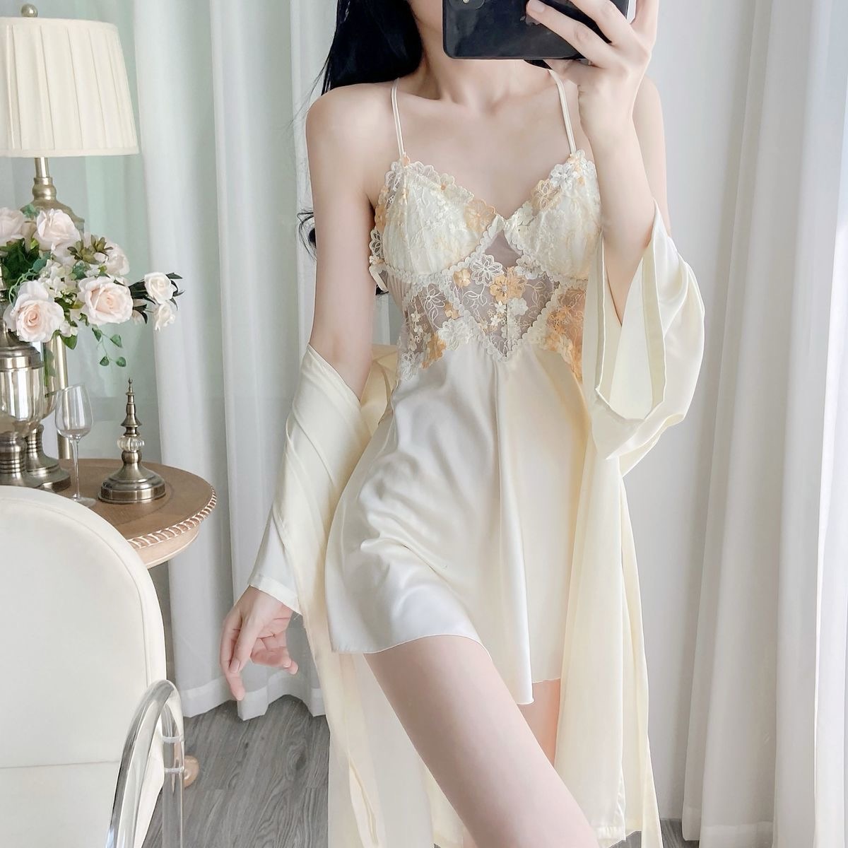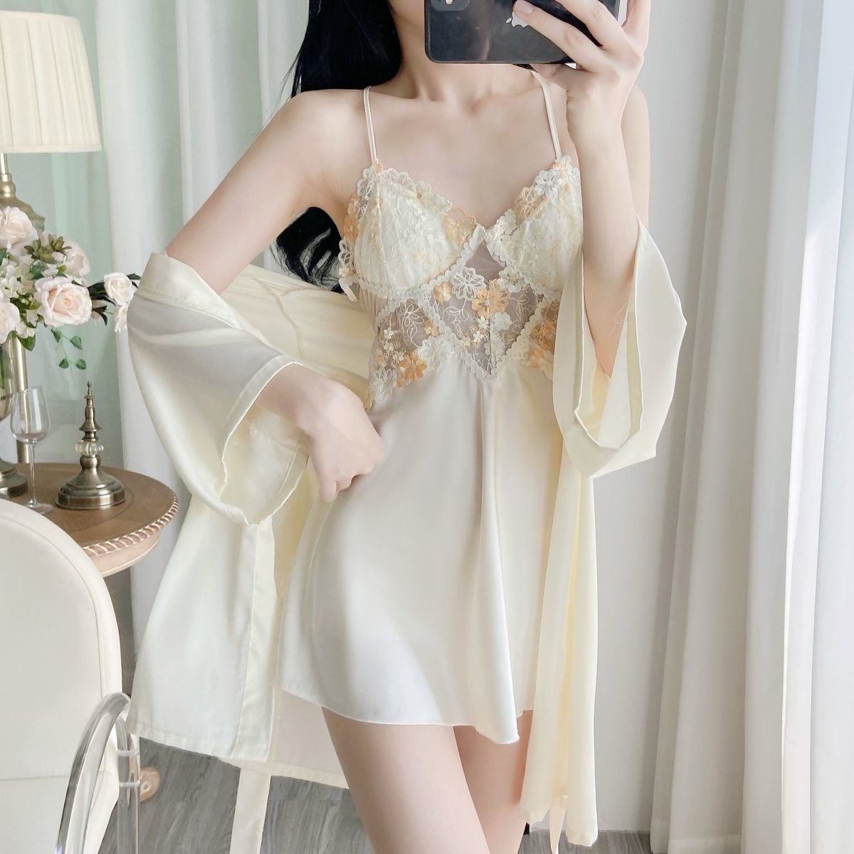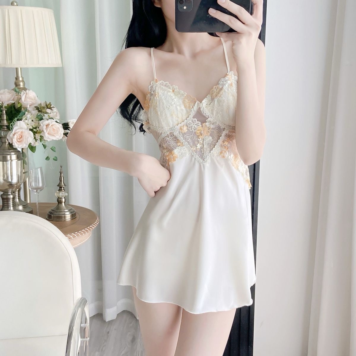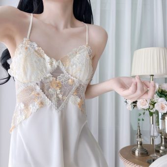 Summer embroidered floral lace see-through sexy V-neck cami homewear