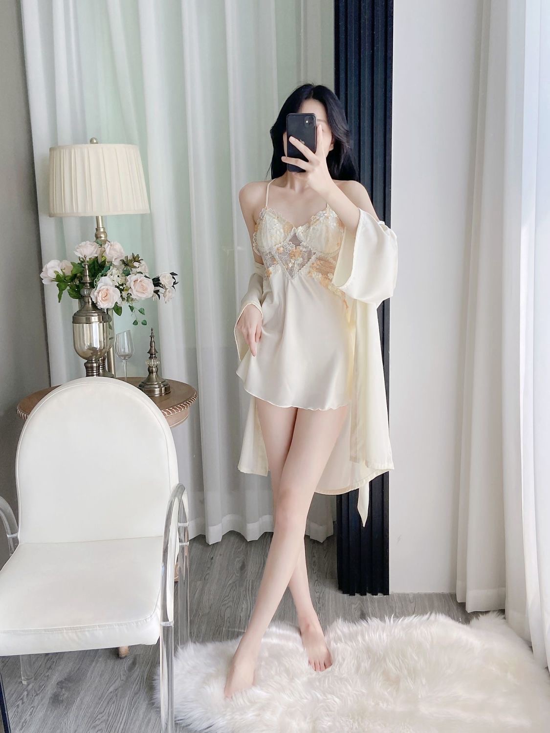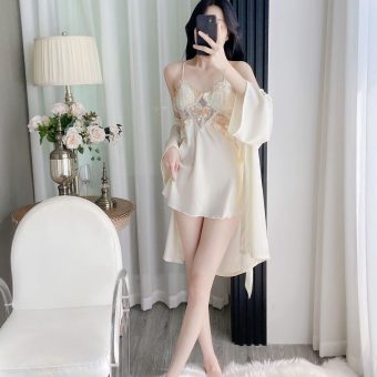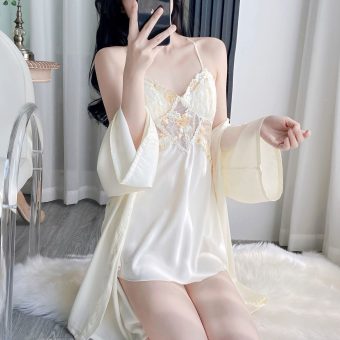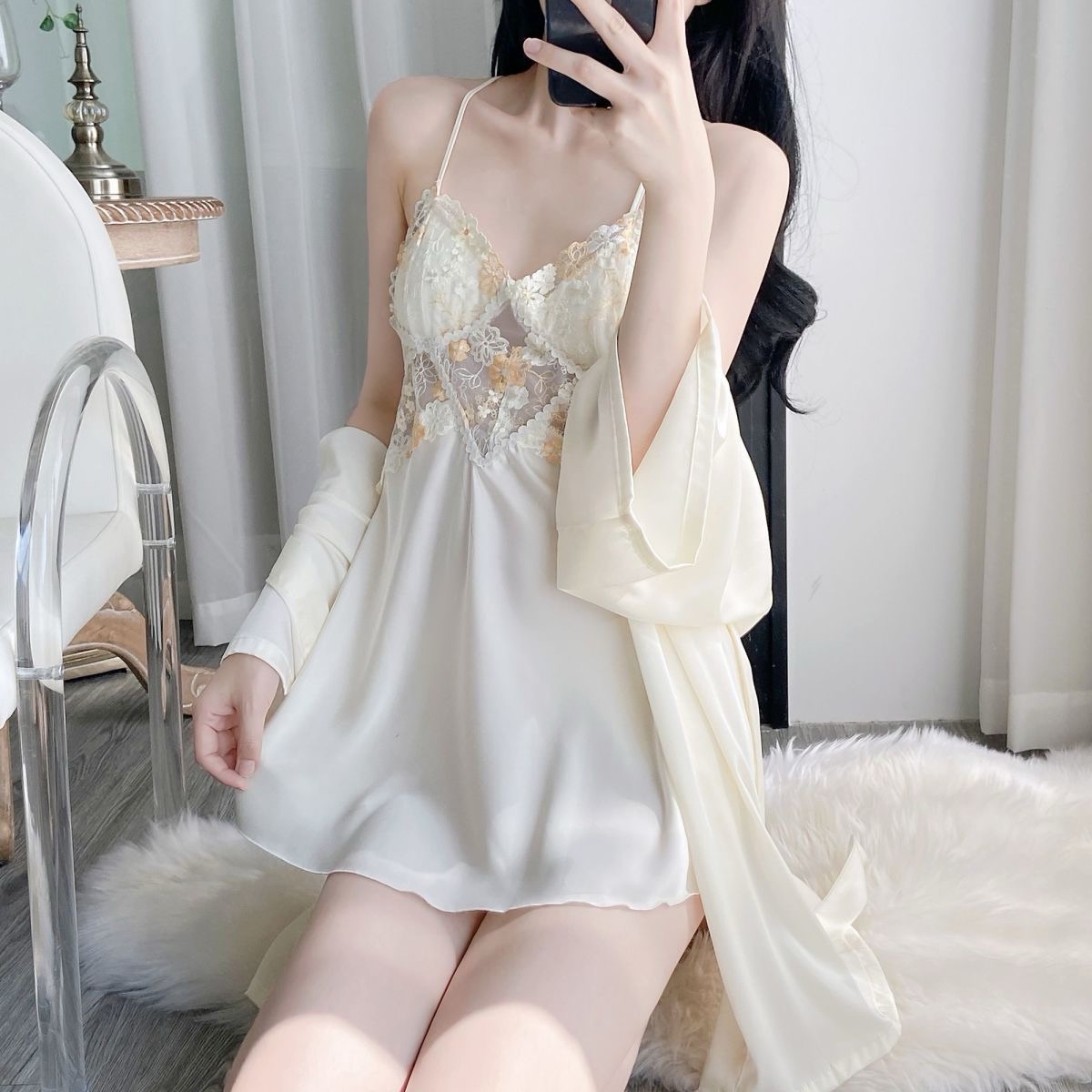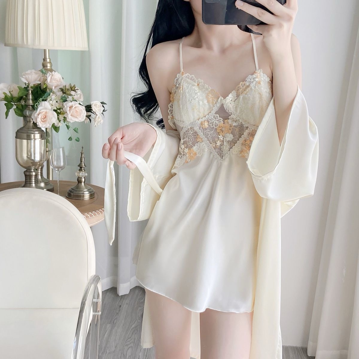 Summer embroidered floral lace see-through sexy V-neck cami homewear