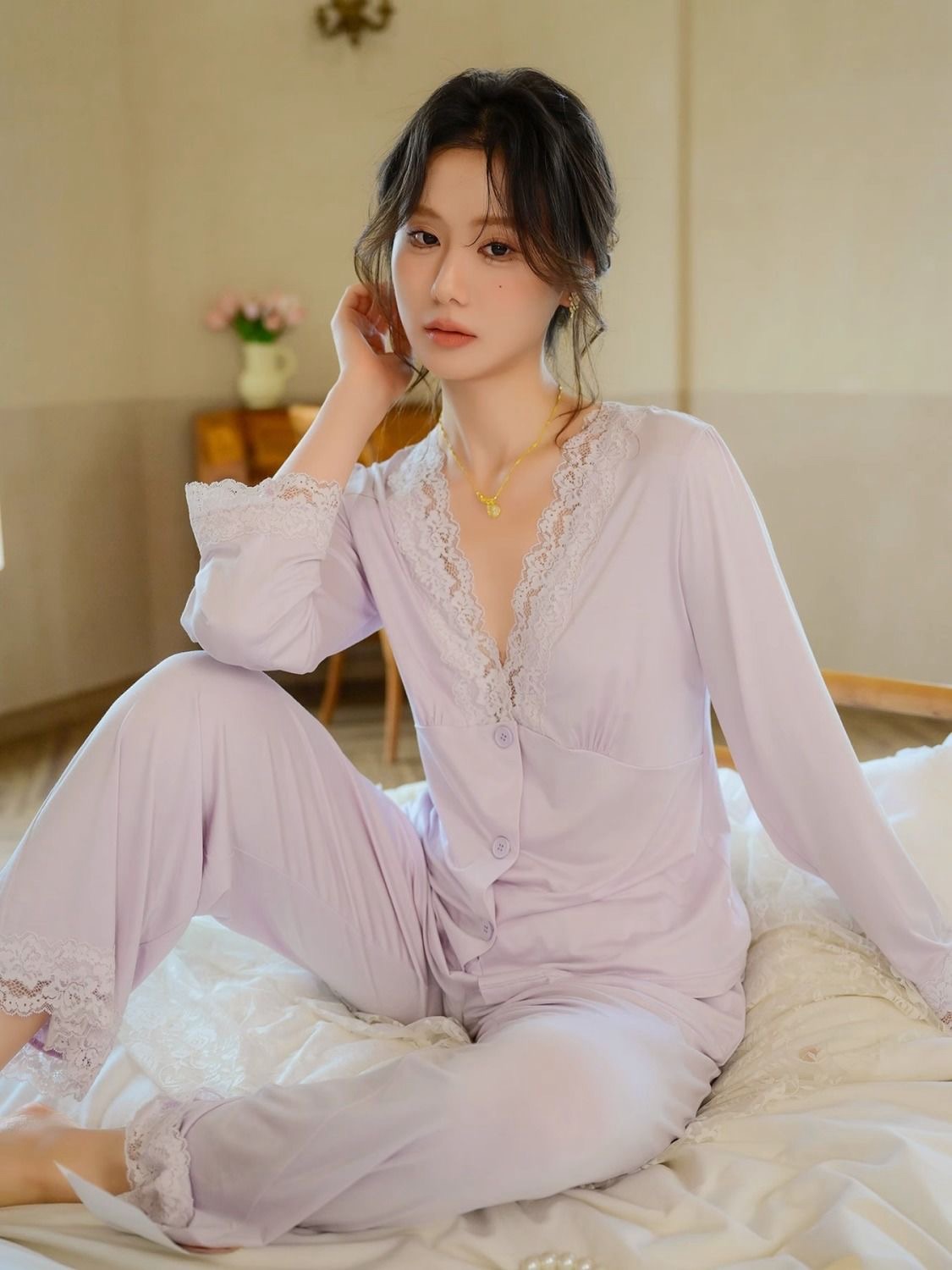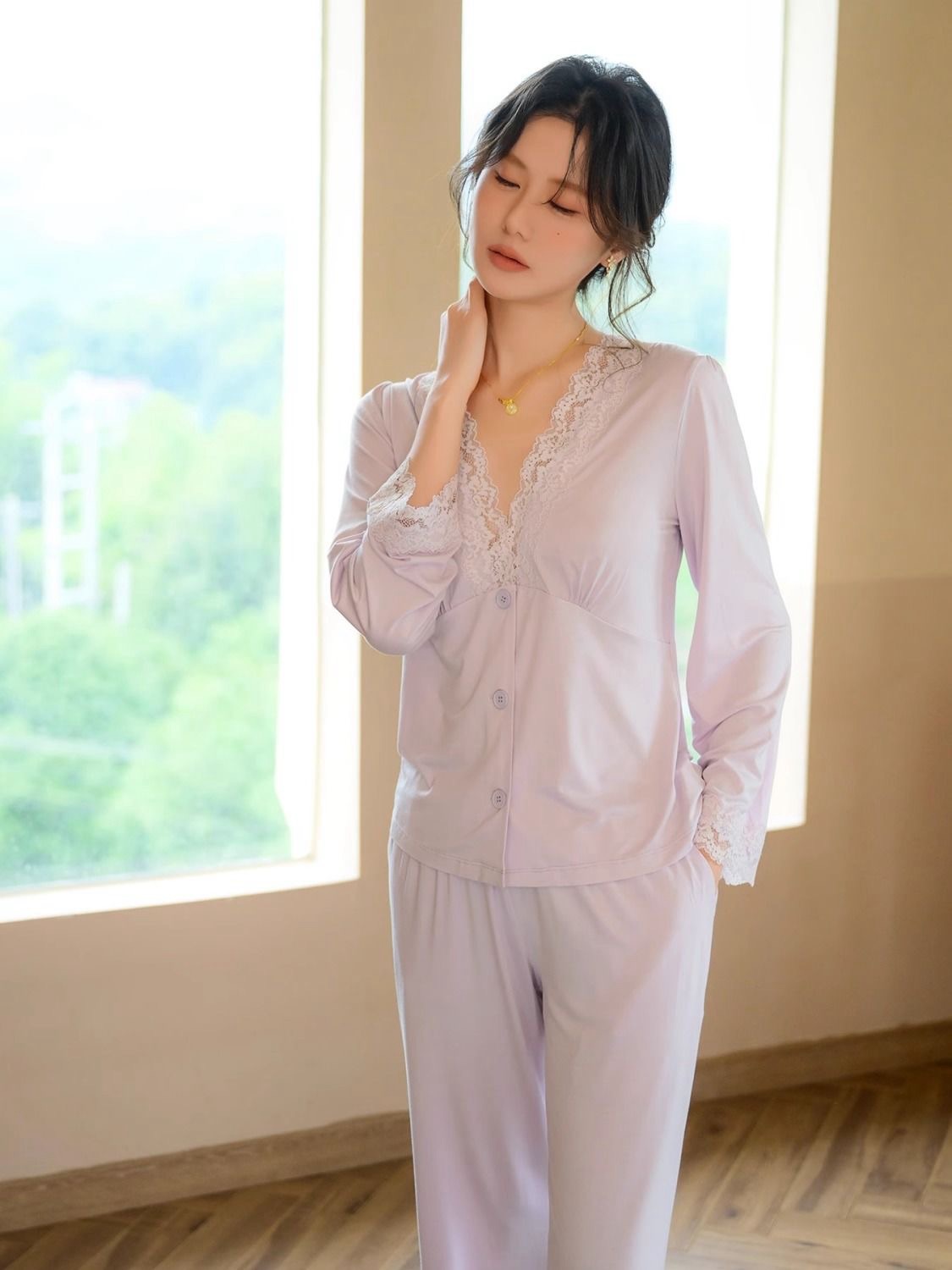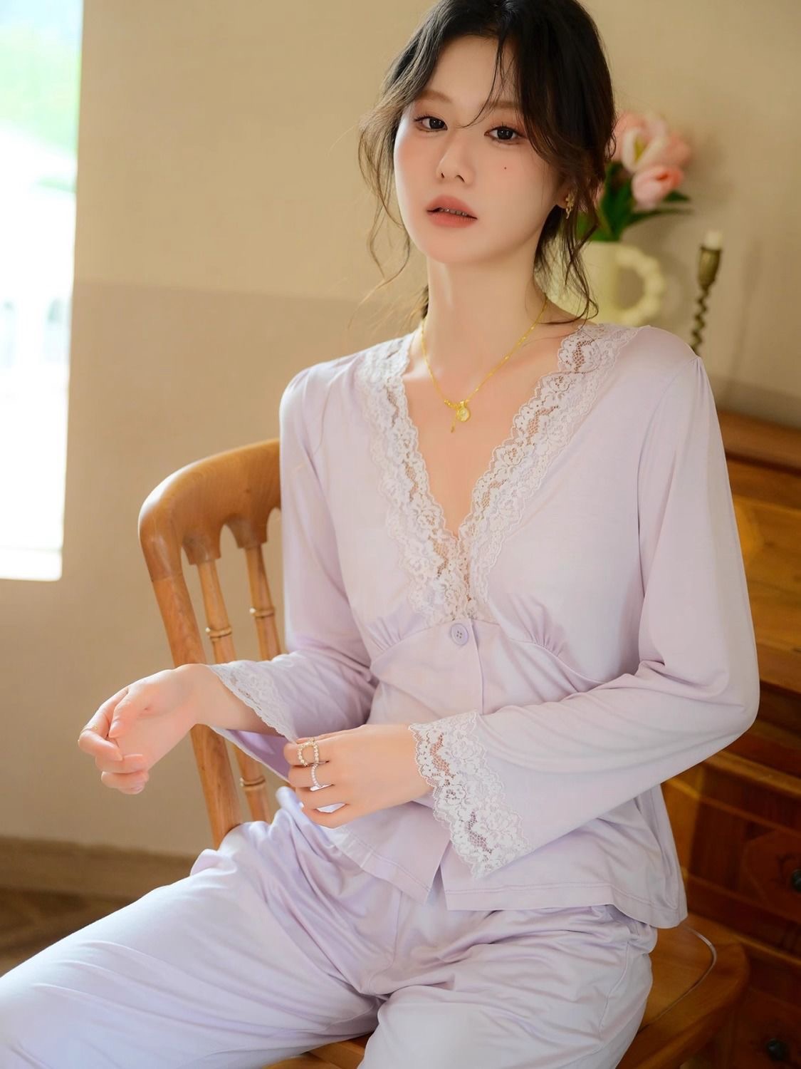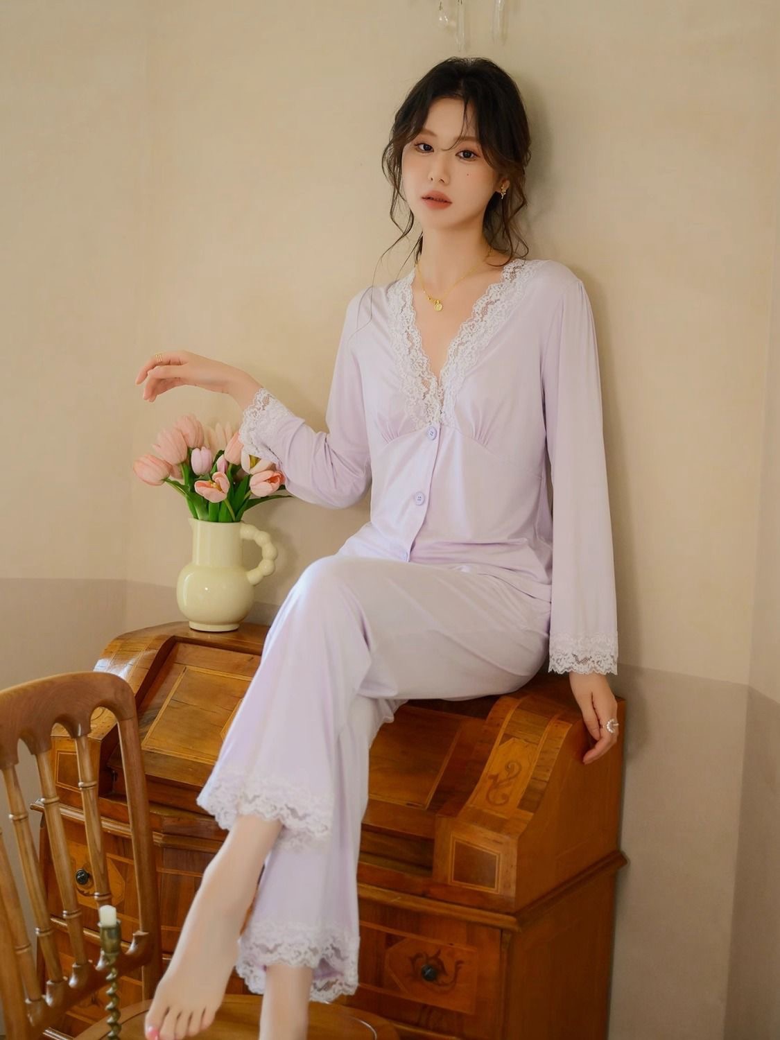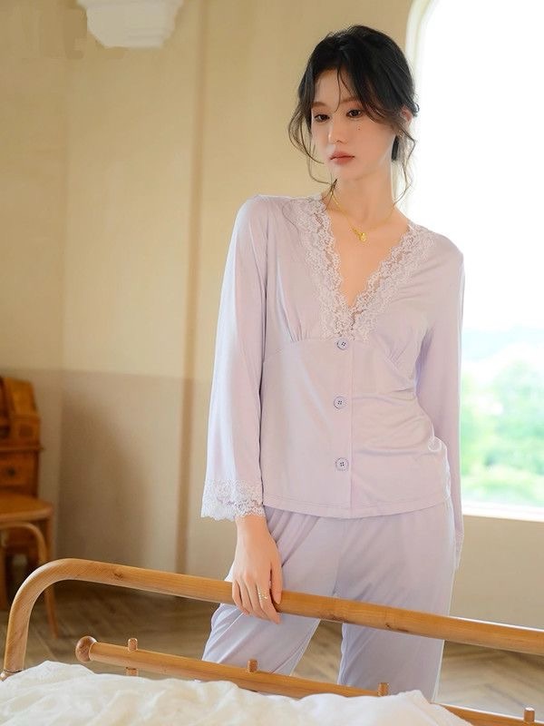 Long Sleeve Modal Lace Homewear Set (Spring/Autumn Collection)
