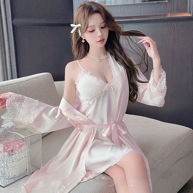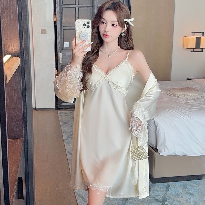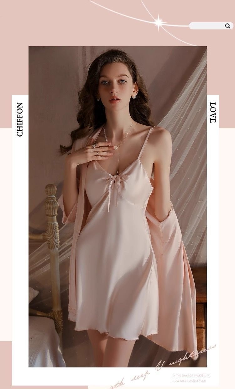 Sexy Padded Satin Nightdress for Spring & Autumn