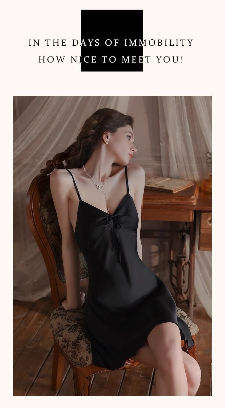 Cat Kite Sexy Silk Lace Strap Nightgown