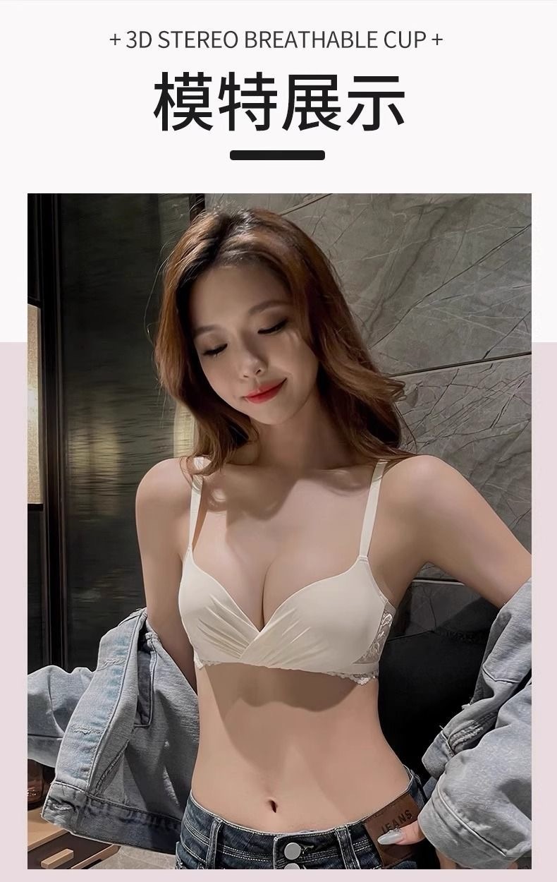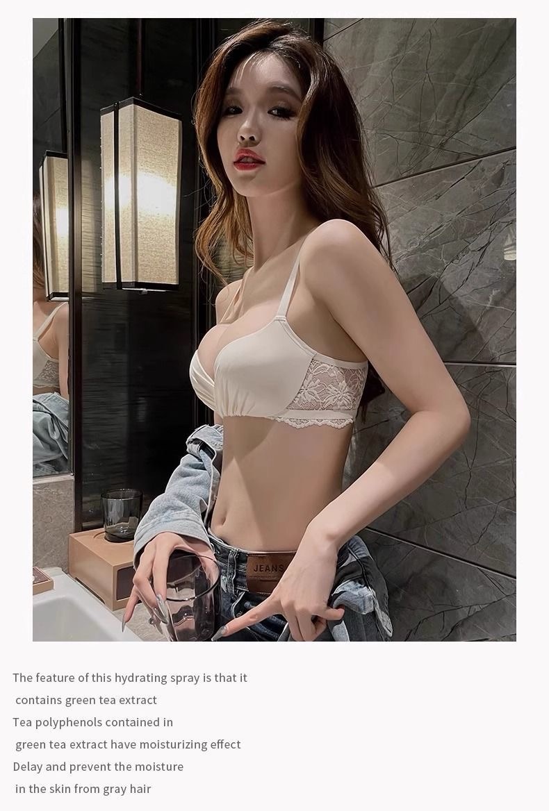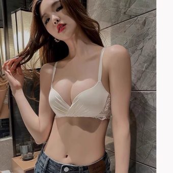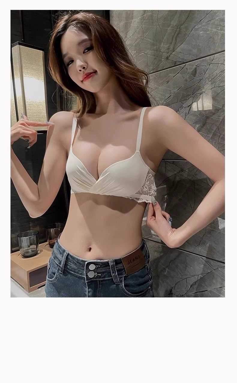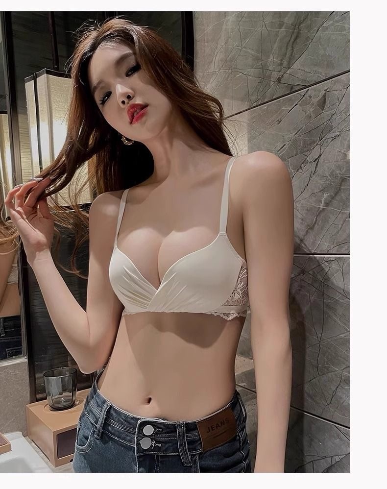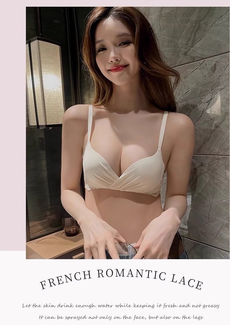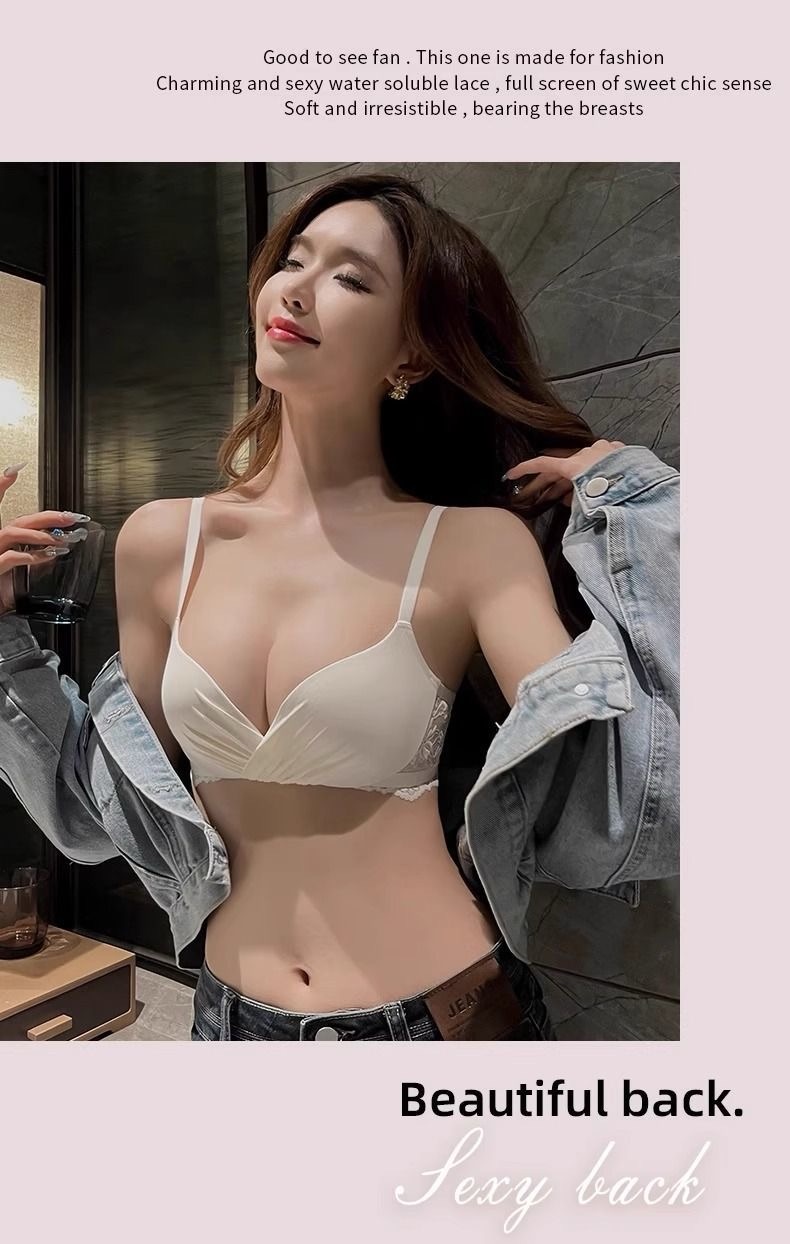 Wirefree Deep V Push Up Bra Set for Small Chest – Wrinkle Textured Bralette and Panty Lingerie Set