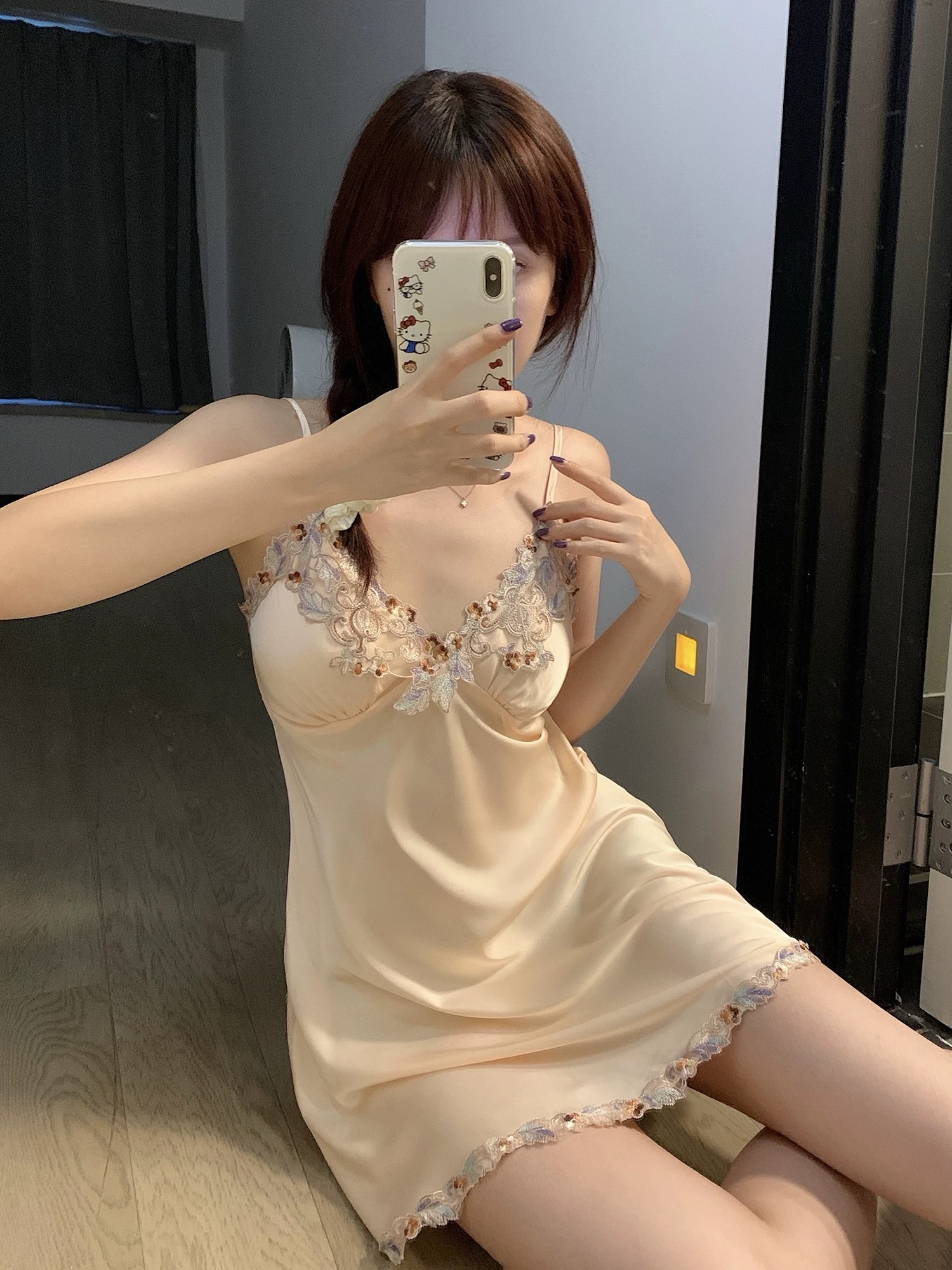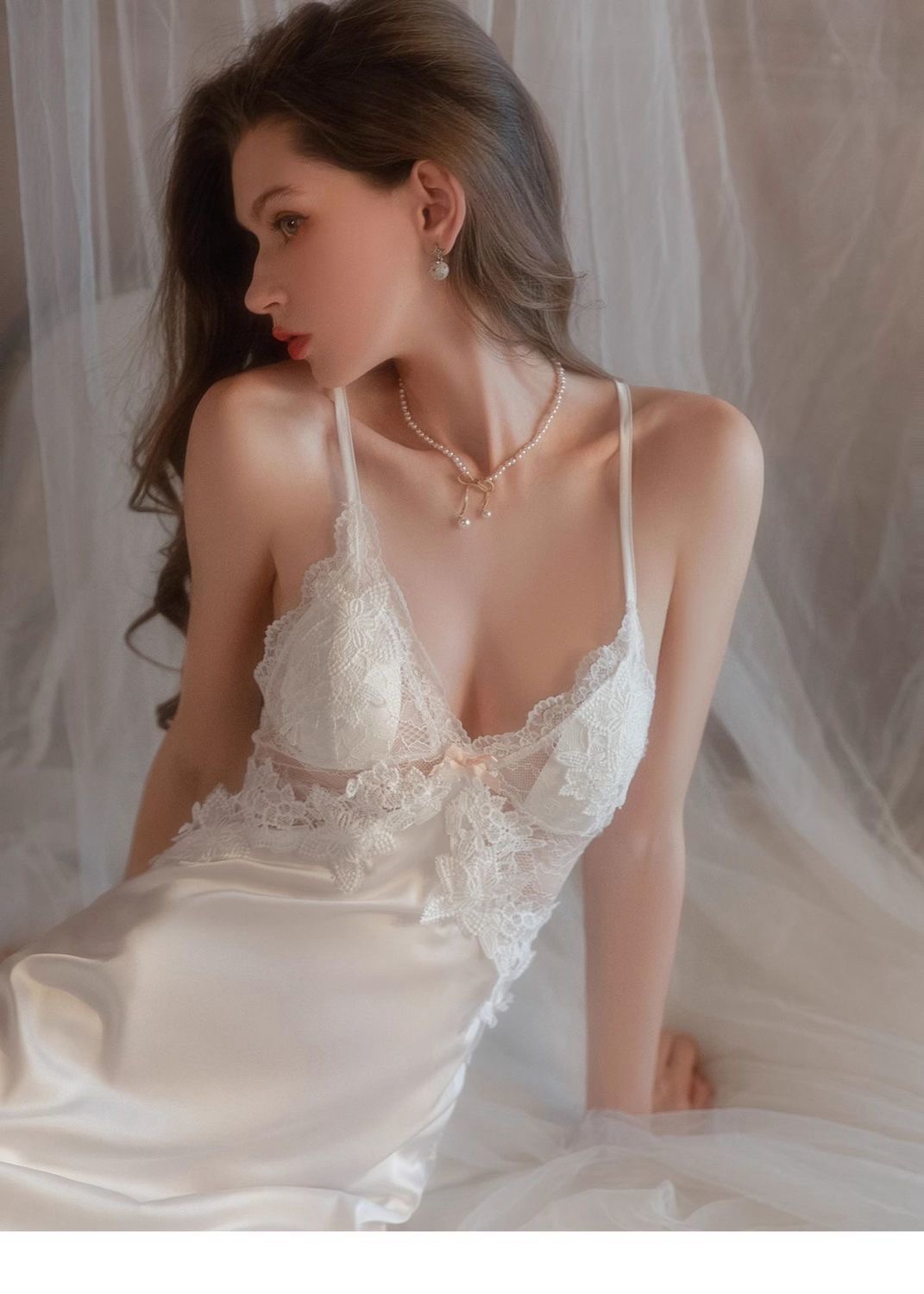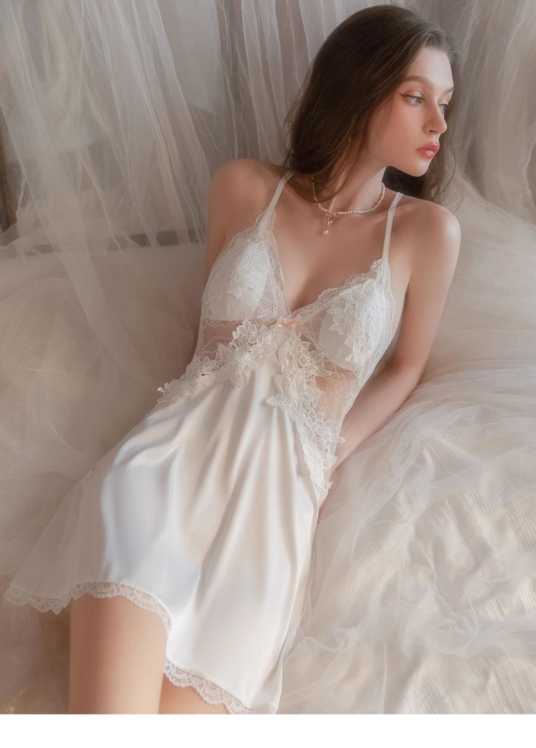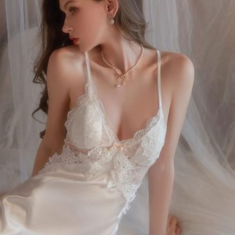 Cat Kite Sexy Silk Lace Strap Nightgown