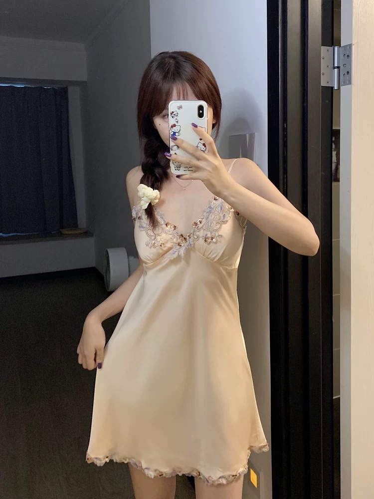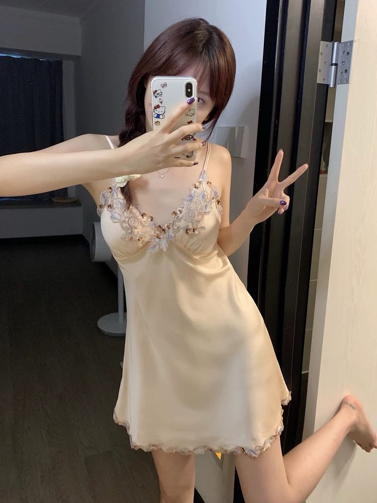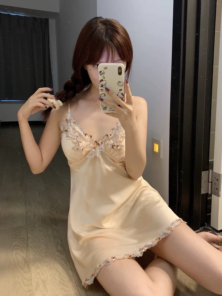 Champagne-colored Ice Silk Camisole Nightgown